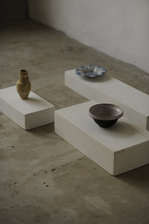 [ ボウルと白い収納棚 ]
